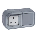 Nowe Plexo - Gniazdo standard brytyjski 2P+Z zaciski śrubowe, komplet natynkowy 13A-250V~ - szare - Legrand 069732L