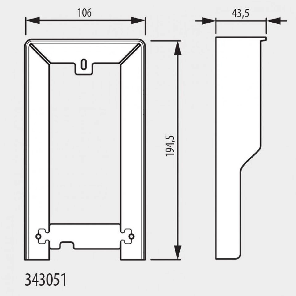 • Czarny daszek natynkowy do paneli zewnętrznych Linia 3000. Akcesoria przeciwdeszczowe w kolorze czarnym do panelu wejściowego Linea 3000 (ref.343093). Może być instalowany tylko w instalacji natynkowej.