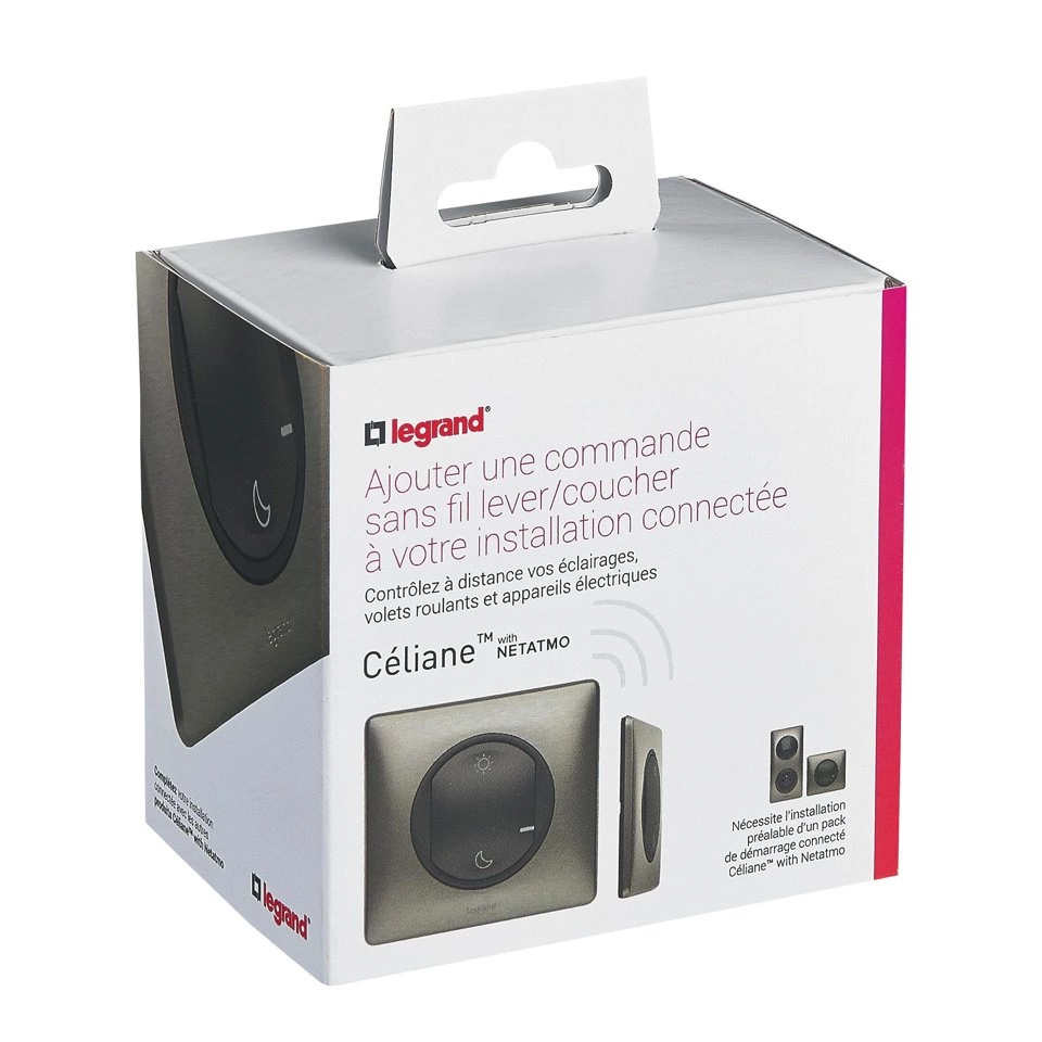 - Inteligentny bezprzewodowy przełącznik scenariuszy "Dzień" i "Noc" do rozbudowy systemu Legrand Netatmo. Umożliwia uruchamianie scenariuszy dzień / noc: jednym naciśnięciem zgasną światła, opuszczają rolety i wyłączają wybrane urządzenia elektryczne.