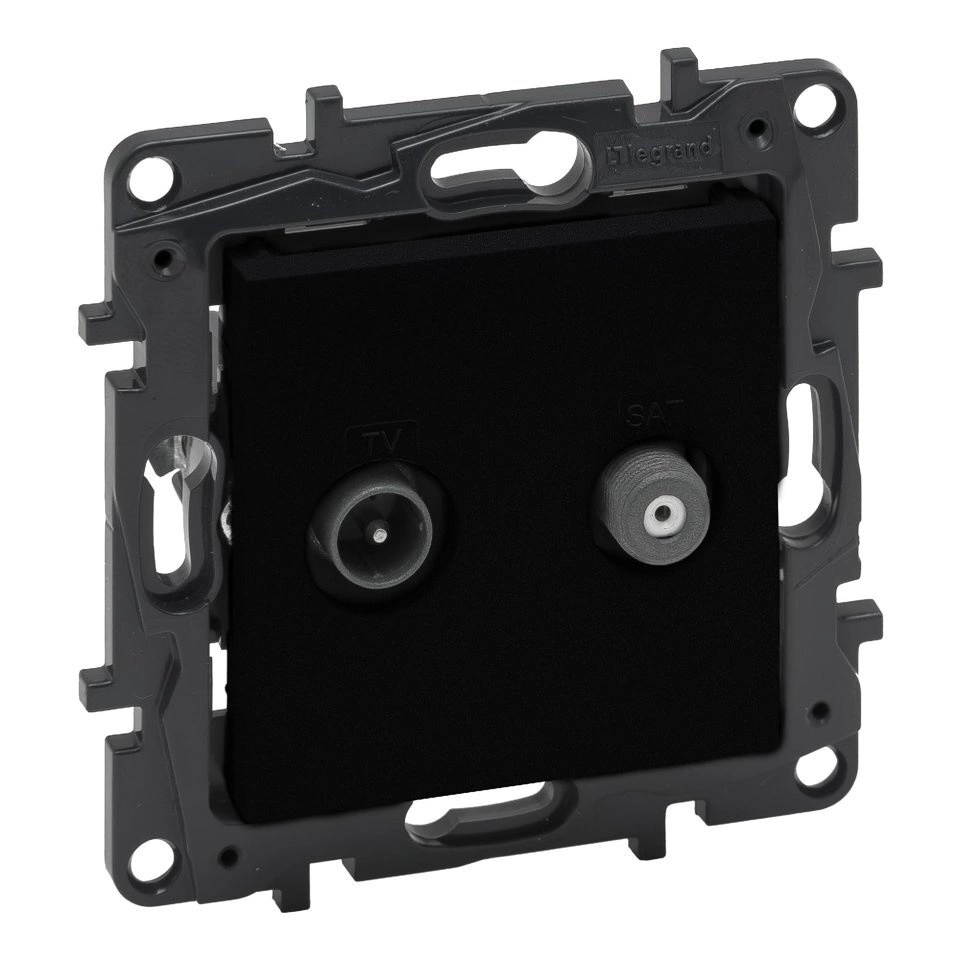 Niloe Step - Gniazdo TV podwójne - typu "F" końcowe do instalacji typu gwiazda 1,5 dB 0-2400 MHz - Czarne Legrand 863576