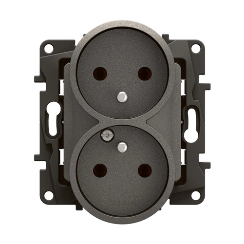 Gniazdo 2x2P+Z z serii Nowe Niloe umożliwia podłączenie urządzeń elektrycznych lub elektronicznych. Zaciski śrubowe. Mechanizm wymaga uzupełnienia o ramkę. Solidny plastikowy uchwyt podtynkowy zapewnia wysoką sztywność i odporność. System nacięć ułatwia montaż w konfiguracji wielokrotnej, a uchwyty podtynkowe idealnie się łączą, co usprawnia instalację. Produkt przeznaczony jest wyłącznie do użytku wewnętrznego. Kolor - stalowy metalizowany.Marka