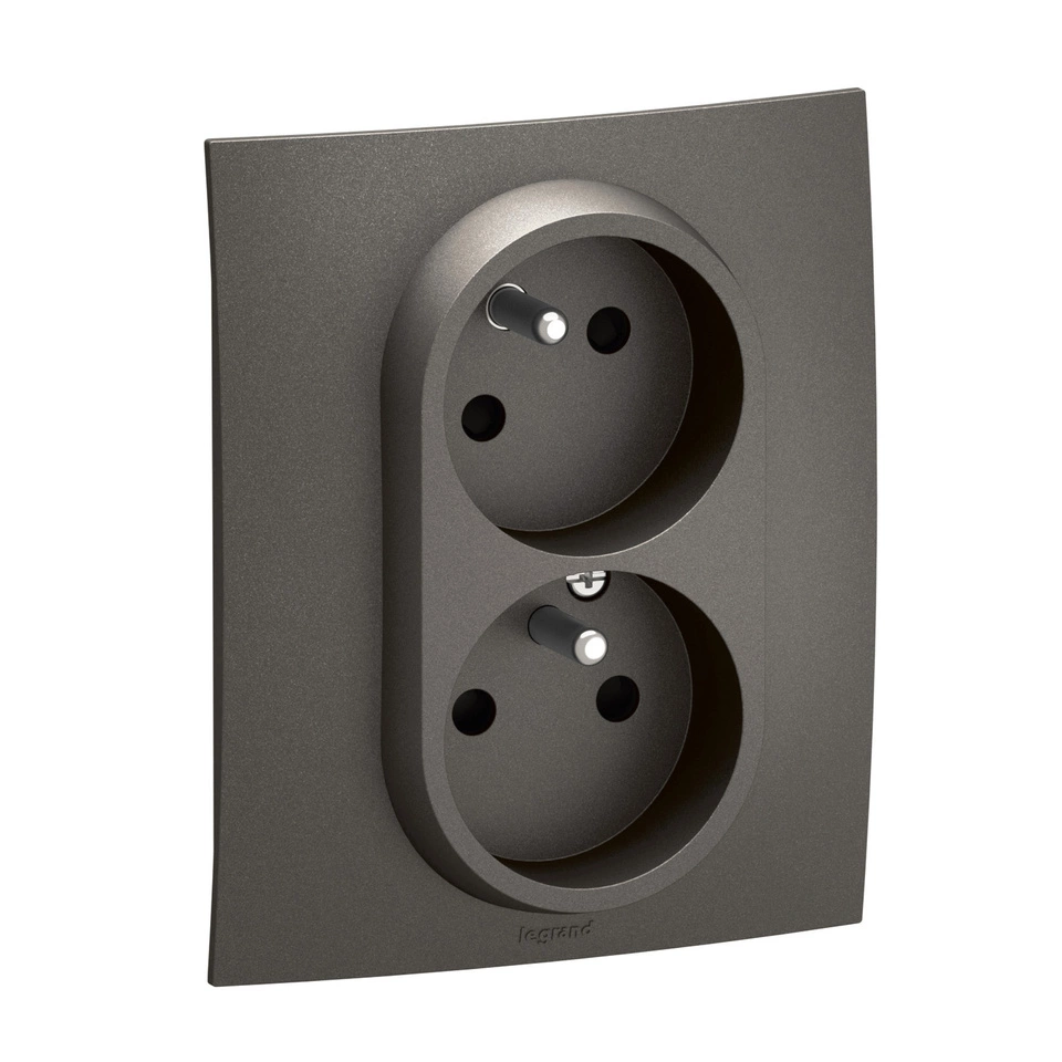 NOWE NILOE - Gniazdo standard czeski 2x2P+Z z przesłoną, zaciski śrubowe - komplet 16A-250V~ STALOWE - Legrand NP3114MG