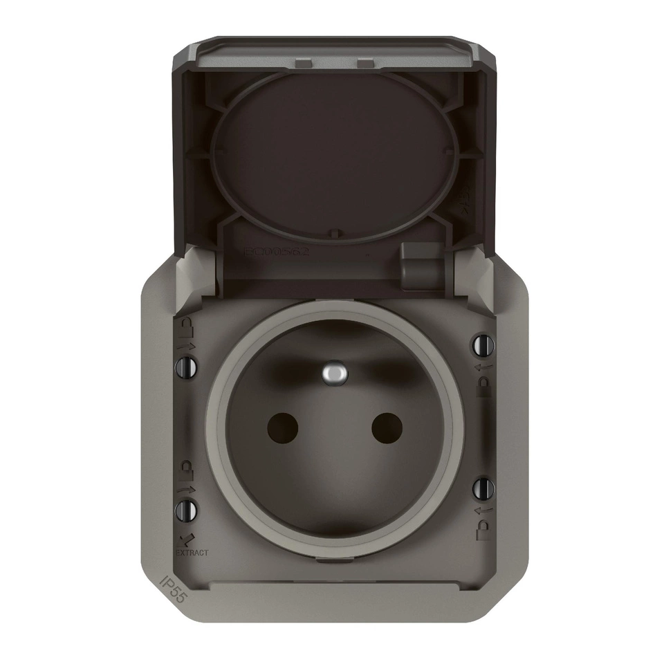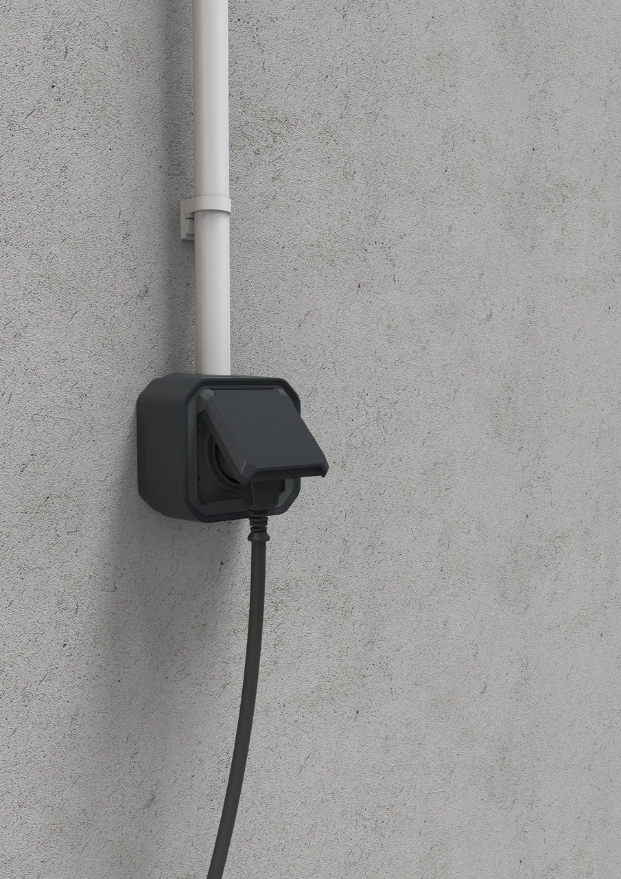 Wodoodporne gniazdo Plexo może być używane do podłączania sprzętu elektrycznego lub elektronicznego w dowolnym miejscu, w którym wymagana jest odporność na wodę, kurz i uderzenia. Do użytku wewnątrz i na zewnątrz budynków. Kolor antracyt. Mechanizm.- stopień ochrony IP55