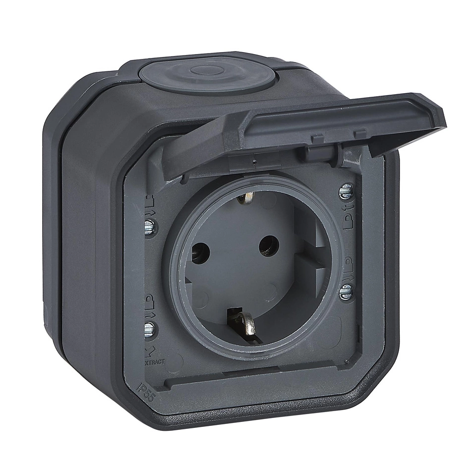Nowe Plexo - Gniazdo Schuko 2P+Z zaciski automatyczne, komplet natynkowy 16 A-250V~ - antracyt - Legrand 069799L