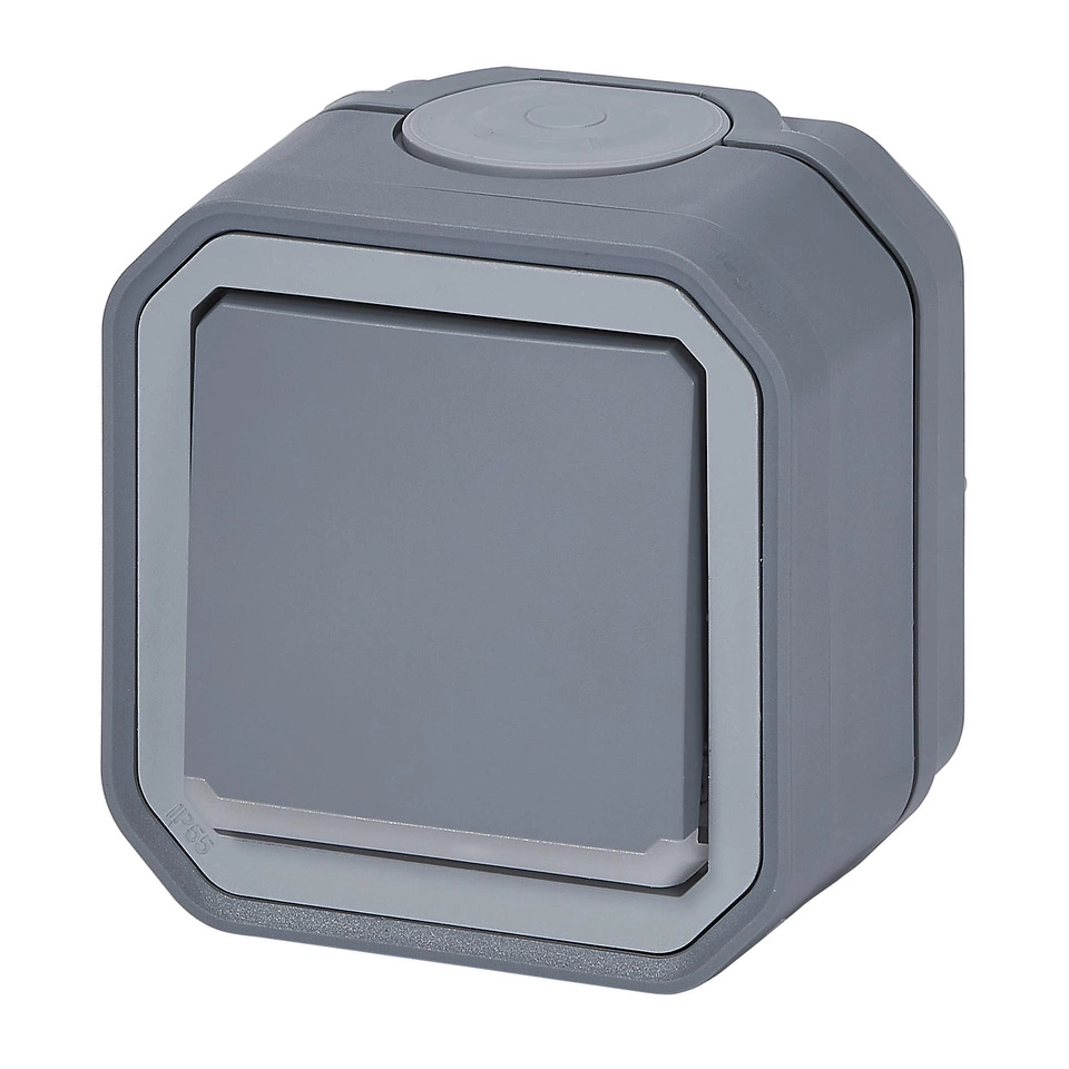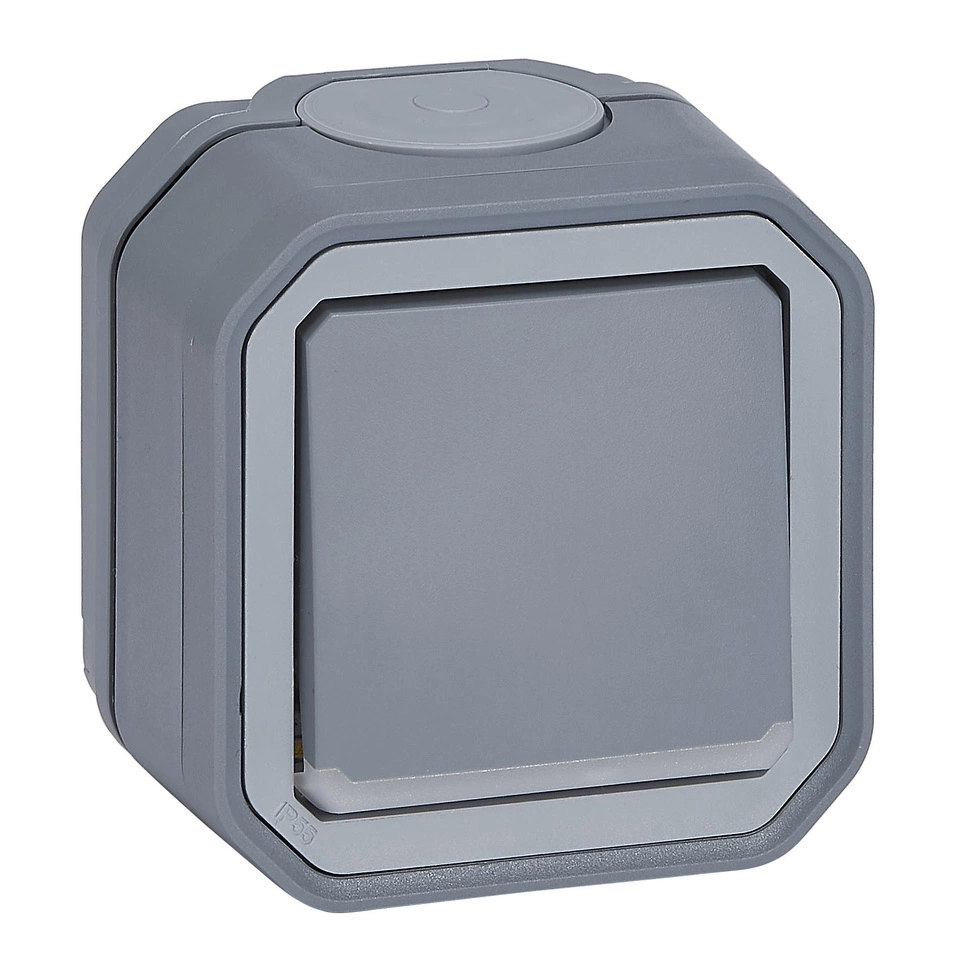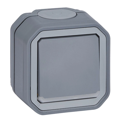 Dwubiegunowy wodoodporny natynkowy łącznik Plexo ze wskaźnikiem przeznaczony do do sterowania oświetleniem poprzez odłączenie 2 przewodów zasilających dla większego bezpieczeństwa. Do użytku wewnętrznego lub zewnętrznego.Kolor szary.- stopień ochrony IP55