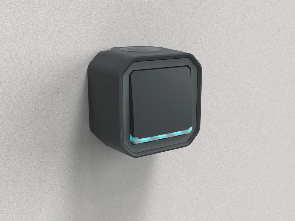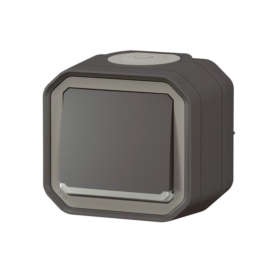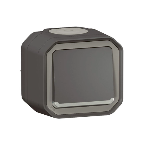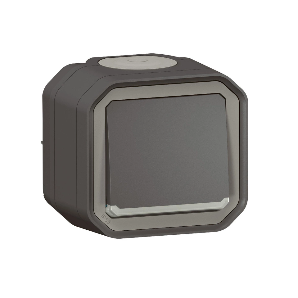 Nowe Plexo - Łącznik schodowy z podświetleniem, komplet natynkowy 10AX-250V~ - antracyt - Legrand 069736L