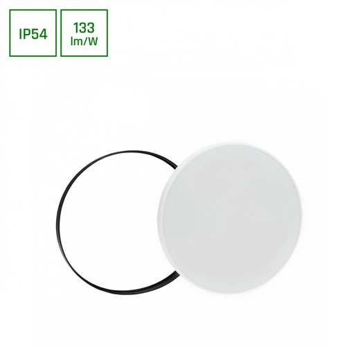Plafon NYMPHEA BLACK & WHITE, o mocy 40 W, wysokiej skuteczności świetlnej 133 lm/W. Posiada wysoką klasę szczelności IP54, dzięki czemu doskonale sprawdzi się w pomieszczeniach o podwyższonej wilgotności. Świeci światłem o zimnej barwie (6000K), która sprawdzi się w pomieszczeniach, w których musimy być najbardziej skupieni i skoncentrowani, np. na technicznych stanowiskach pracy. Przeznaczona do montażu natynkowego. Produkt posiada atest PZH, dzięki czemu można go zastosować do pomieszczeń podwyższonych wymaganiach higienicznych.