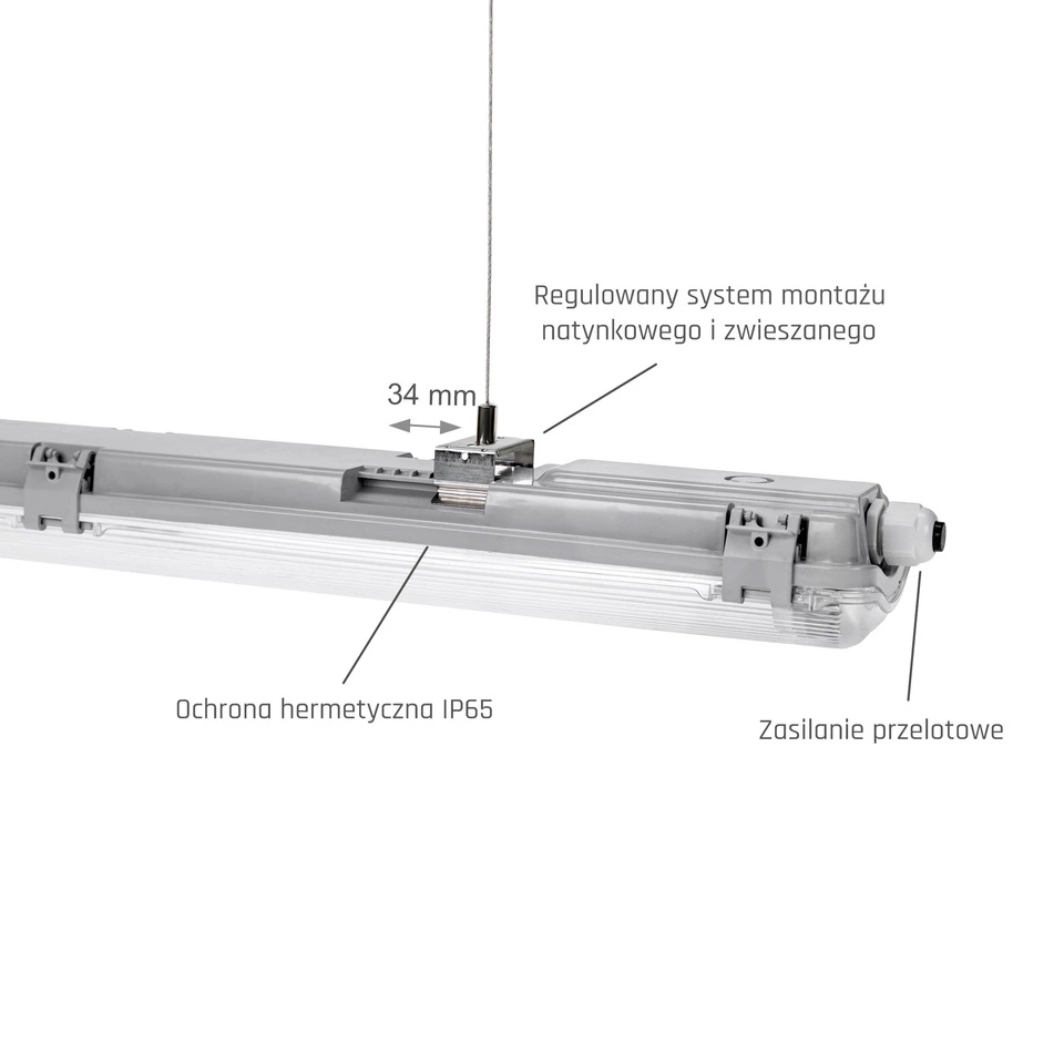Oprawa Hermetyczna LIMEA LED TUBE SLIM G13 2x150 250V Szara IP65 SpectrumLED SLI028016_SLIM