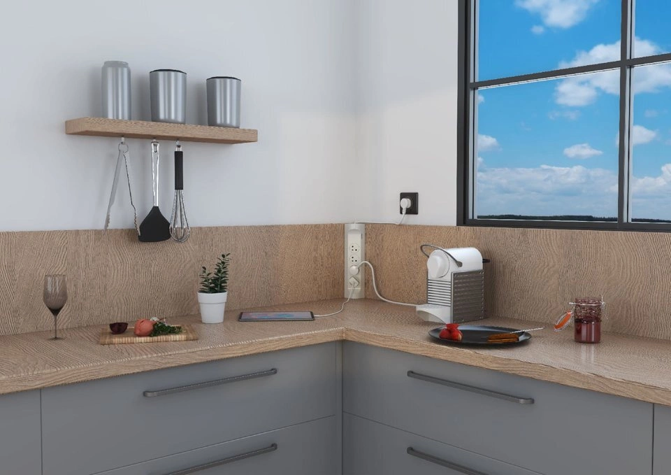 - Przedłużacz narożny - design dostosowany do wpasowania przedłużacza w naroże mebla i ściany w kuchni lub biurze.