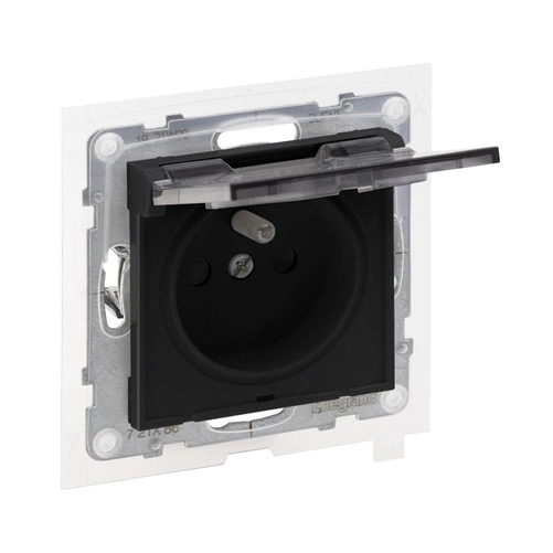 SUNO - Gniazdo 2P+Z IP44 - 16 A - 250 V~ - zaciski automatyczne - z przesłoną, Czarny - Legrand 721486