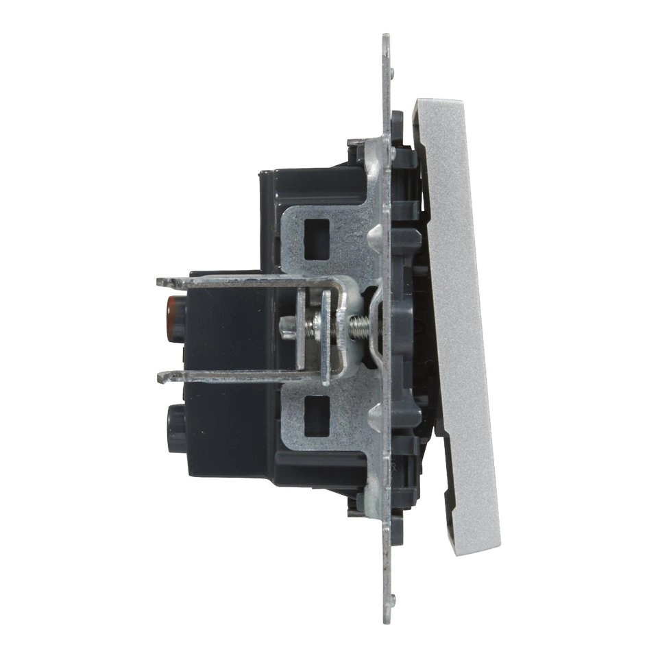 Łącznik krzyżowy - 10 AX - 250 V~ - zaciski śrubowe. Łącznik służy do włączania i wyłączania oświetlenia. Mechanizm wymaga dodania ramki. Kolor Aluminium.O serii SUNO: