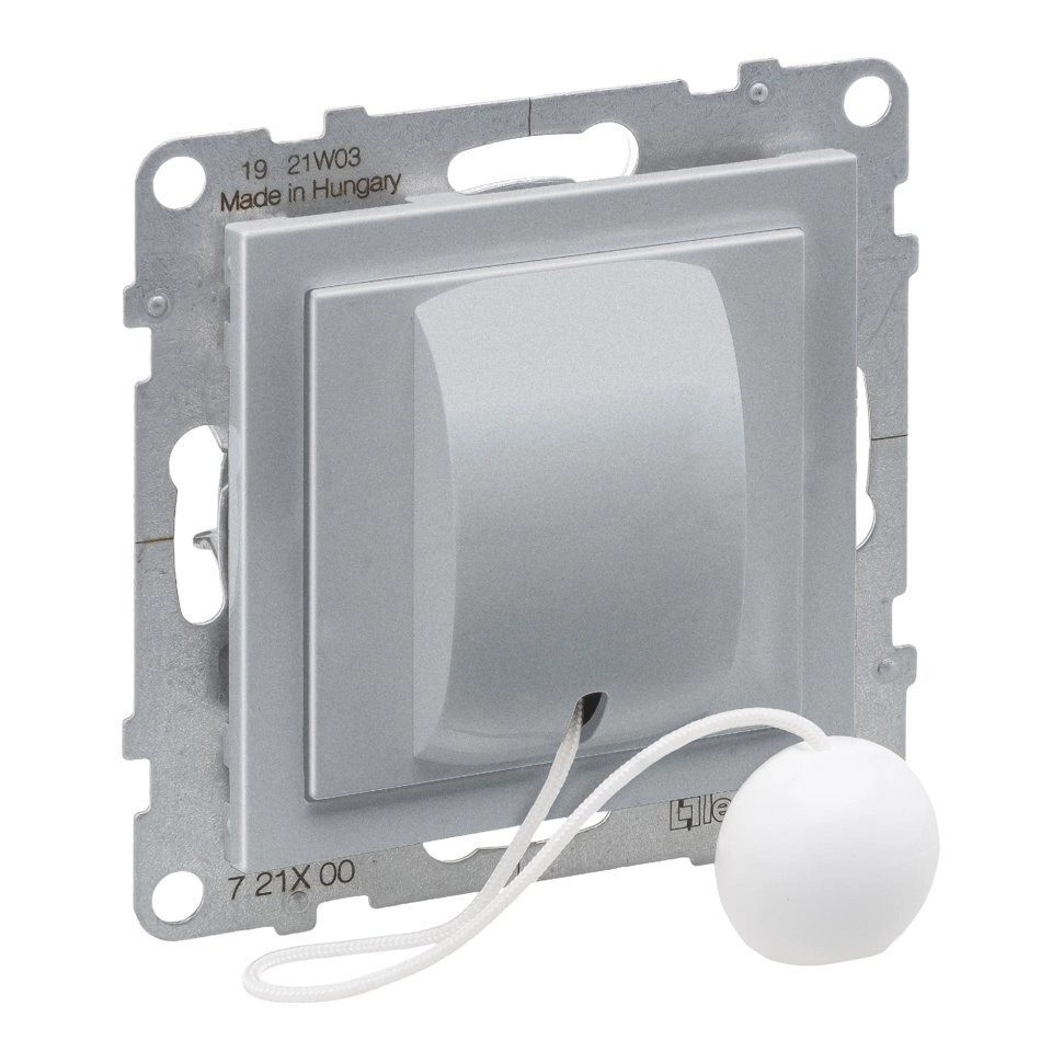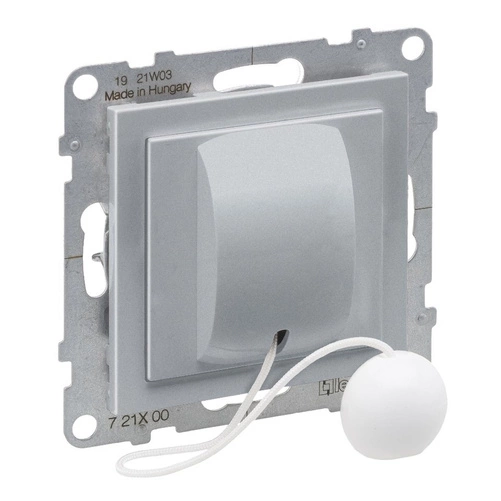 Przycisk przełączny cięgnowy NO/NC - 6 A - 250 V~ - zaciski automatyczne . Przycisk przełączny cięgnowy służy do włączania i wyłączania oświetlenia i timera. Mechanizm wymaga dodania ramki. Kolor Aluminium.