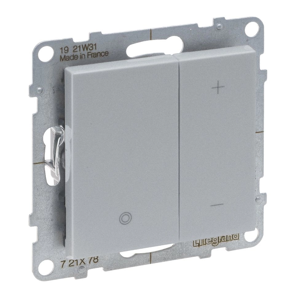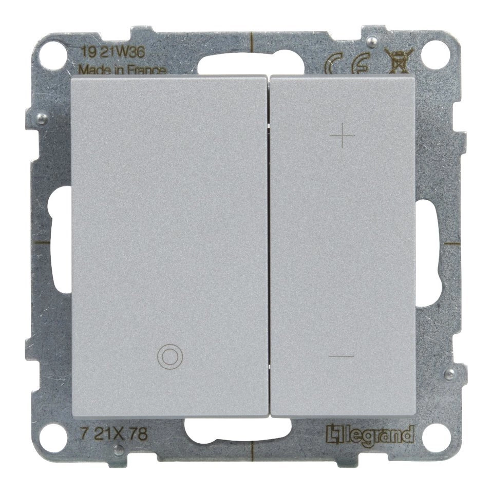 SUNO - Ściemniacz przyciskowy - 240 V~ - 50 Hz - 5 - 75 W ( 10 lamp maks.) dla lamp LED i świetlówek kompaktowych z opcją ściemniania - bez zacisku neutralnego, Aluminium - Legrand 721378