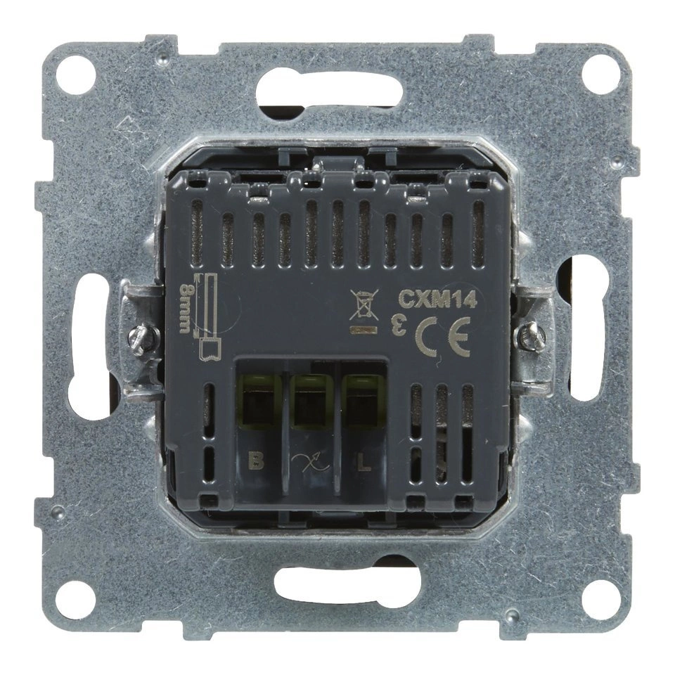 Ściemniacz przyciskowy - 240 V~ - 50 Hz - 5 - 75 W dla lamp LED i świetlówek kompaktowych z opcją ściemniania - bez N. Ściemniacz służy do włączania, wyłączania i zmiany natężenia oświetlenia. Mechanizm wymaga dodania ramki. Kolor Czarny .