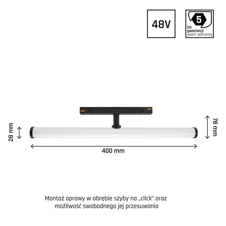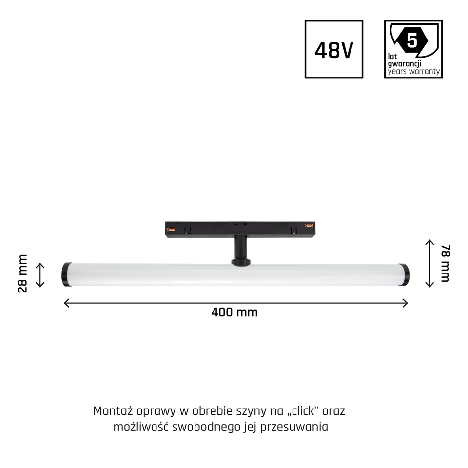 SYSTEM SHIFT - BEAM oprawa na szynoprzewód 28x400x75mm 12W 150st czarny 5 lat gw. DALI