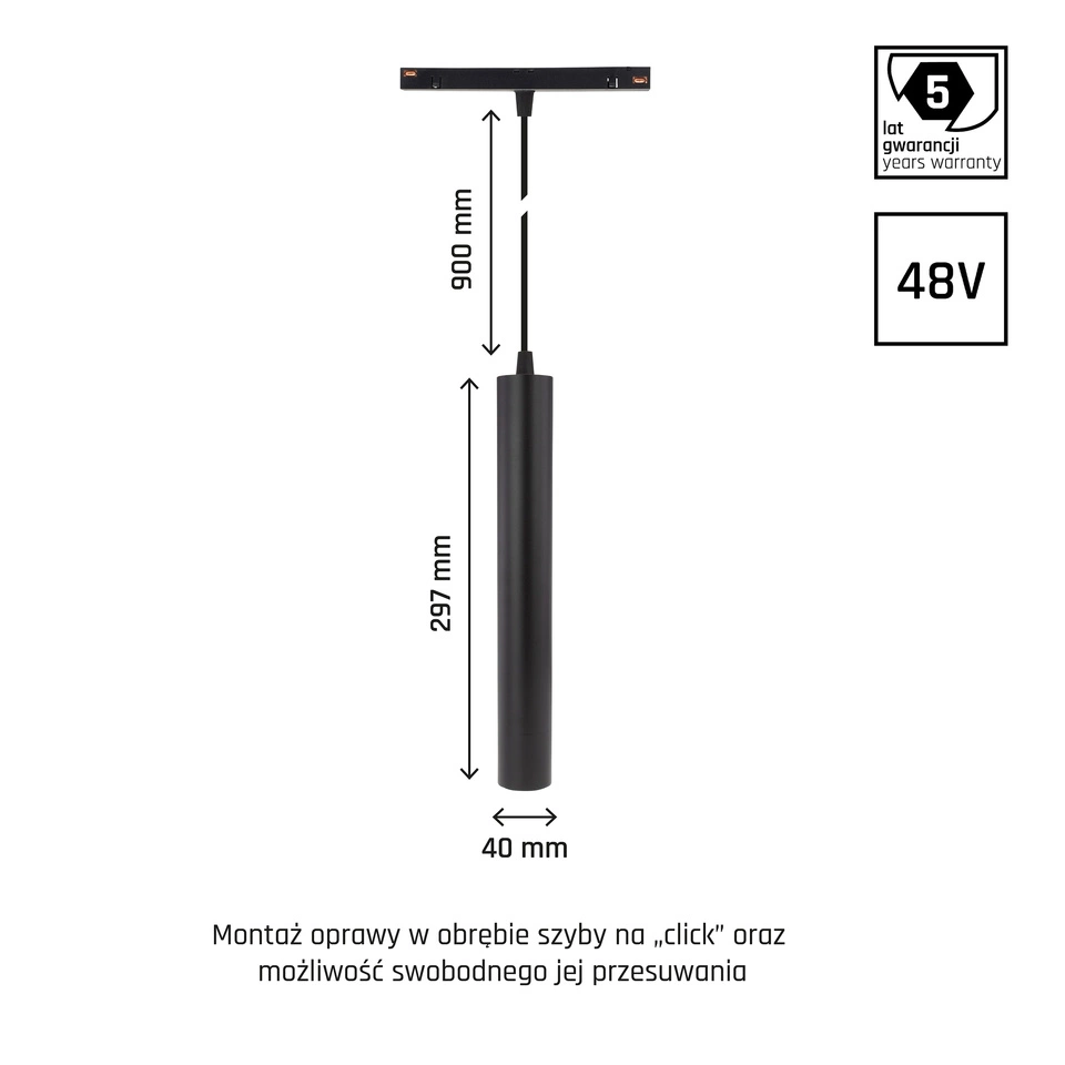 SYSTEM SHIFT - HANGIT oprawa zwis na szynop. 40x297 (935mm kabel) 12W 25st czarny 5 lat gw. DALI