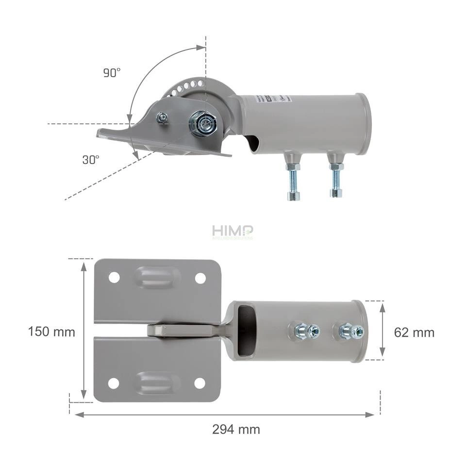 Regulacja uchwytu w zakresie -30° aż +90°, pozycję można zmienić o 10°. Materiał: aluminium odlewane.