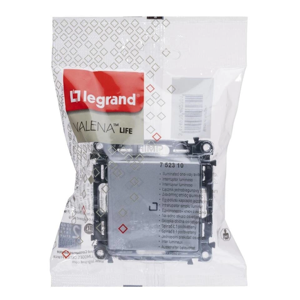 VALENA LIFE ŁĄCZNIK JEDNOBIEGUNOWY PODŚWIETLANY ALUMINIUM 250 V~ Legrand 752310