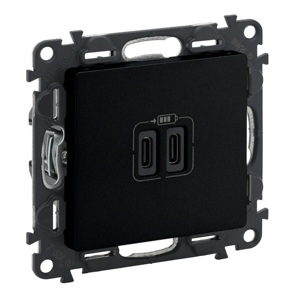 VALENA LIFE - GNIAZDO USB TYP C+C - 15 W - CZARNE