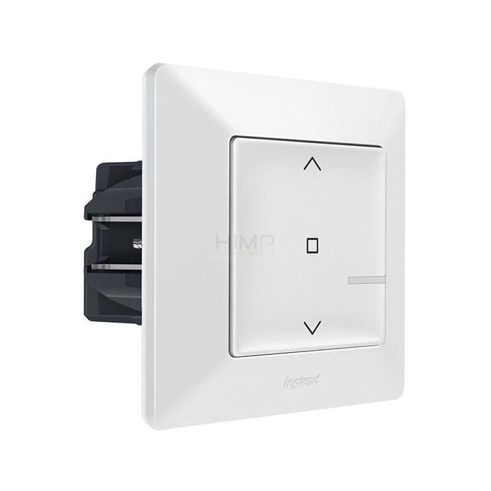 - Inteligentny przewodowy włącznik roletowy, zastępuje tradycyjny wyłącznik, pozwala na sterowanie roletami bezpośrednio lub zdalnie za pomocą inteligentnych bezprzewodowych włączników roletowych, aplikacji Legrand Home + Control lub asystentów głosowych.