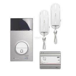 Zestaw domofonowy dwurodzinny podtynkowy panel SFERA Stalowoszary + 2 unifony Classe 100 A16E Bticino 364234D